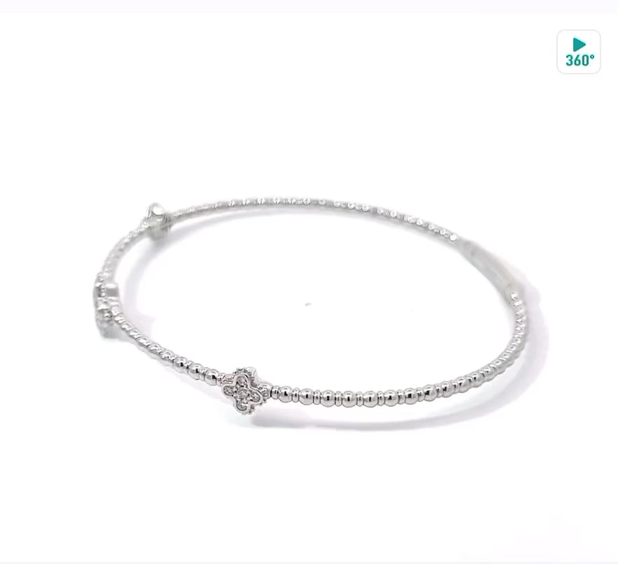 14K White Gold Diamond Clover Bangle